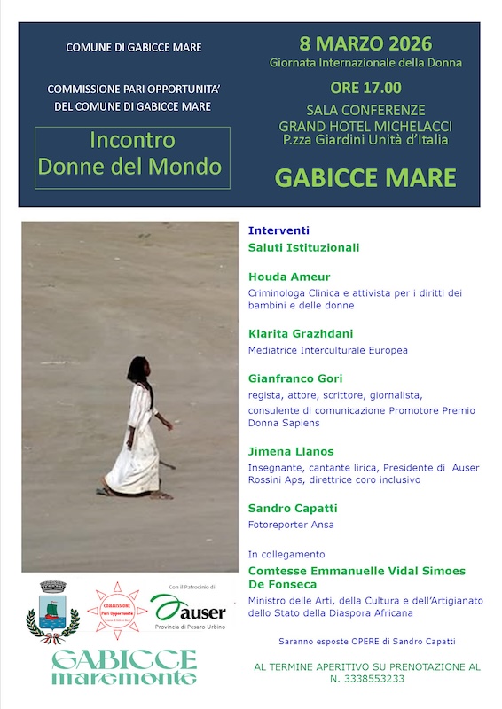 In occasione della Giornata Internazionale della Donna, il Comune di Gabicce Mare e la Commissione Pari Opportunità promuovono un incontro di alto valore civile e culturale dal titolo “Donne del Mondo”.