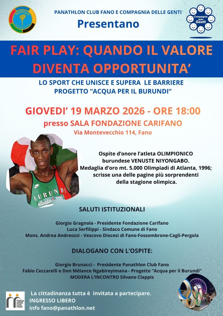 Si intitola “Fair Play: quando il valore diventa opportunità” e avrà un campione olimpico simbolo dei valori autentici dello sport il prossimo evento promosso da Panathlon International Club di Fano, pronto a riunirsi...