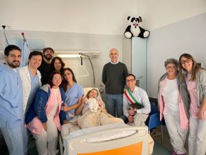 Questa mattina il sindaco Luca Serfilippi e il presidente di Aset spa, Giacomo Mattioli, hanno fatto visita alla piccola Virginia e ai suoi genitori nel reparto di Ostetricia e Ginecologia del Santa Croce, portando loro un augurio speciale a nome di tutta la comunità fanese. In occasione dell’incontro è stato consegnato alla famiglia un kit di prodotti per l’infanzia offerti dalle farmacie comunali Aset spa.