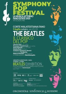 La settima edizione del Symphony Pop Festival, promosso dall’Orchestra Sinfonica G. Rossini assieme al Comune di Fano, col patrocinio della Regione Marche e del Ministero della Cultura e il sostegno degli sponsor BCC Banca di Credito Cooperativo ed Enereco, prosegue con un secondo, imperdibile appuntamento: sabato 05 luglio 2025 ore 21.15 alla Corte Malatestiana, andrà in scena un omaggio ai favolosi quattro baronetti di Liverpool, “The Beatles – Il classico del pop”.