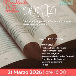 Il 21 marzo, alle ore 16.00, nella Sala del Consiglio Comunale, in occasione della Giornata Mondiale della Poesia, il Comune di Gabicce Mare invita la cittadinanza a un evento speciale dedicato alla bellezza...