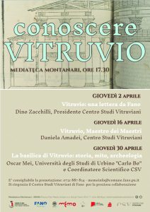 Il primo incontro si terrà giovedì 2 aprile con “Vitruvio: una lettera da Fano”, a cura di Dino Zacchilli, presidente del Centro Studi Vitruviani.