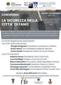 “La sicurezza non è solo controllo, ma soprattutto prevenzione, ascolto e collaborazione” – sottolinea il Presidente del Club Lions di Fano avv. Roberto Ianne organizzatore dell’evento – “Questo convegno vuole essere un’occasione concreta di confronto aperto alla cittadinanza, affinché Fano continui a crescere come città inclusiva, vivibile e protetta.”
