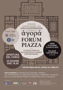 Il Corso di Alta Formazione del Centro Studi Vitruviani di Fano è giunto alla quarta edizione e continua ad indagare temi legati al De Architectura. L’edizione 2025, che si terrà a Fano nella sede dell’Università degli Studi di Urbino ‘Carlo Bo’ a Palazzo San Michele dal 29 giugno al 5 luglio, propone il tema “ἀγορά, forum, piazza. Lo spazio pubblico dall’antichità al mondo contemporaneo”.