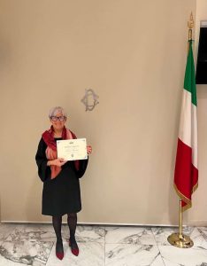 Rosina Alessandri ha ricevuto il premio internazionale “Donna Sapiens- Ambasciatrice d’Onore- Eccellenza per la non violenza, per il costante impegno nel promuovere i valori della pace e del rispetto reciproco come strumenti di trasformazione sociale”.