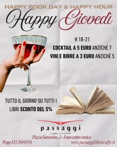 Giovedì 16 ottobre libri scontati e vini, cocktail e birre a prezzo di happy hour