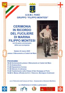 Il Gruppo “Filippo Montesi” di Fano dell’Associazione Nazionale Marinai d’Italia rende gli onori al nostro concittadino, il Fuciliere di Marina Filippo Montesi, caduto 42 anni fa durante la missione di pace in Libano.