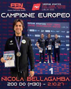 LA FANUM FORTUNAE NUOTO FESTEGGIA L’ORO EUROPEO DI NICOLA BELLAGAMBA