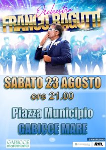 Sabato 23 agosto, serata speciale a Gabicce Mare in piazza Municipio per gli amanti del liscio e della musica popolare con il concerto dell’Orchestra Franco Bagutti che porterà in scena uno spettacolo unico, ripercorrendo i successi musicali che hanno fatto la storia dagli anni ’60 fino ad oggi, emozionando generazioni in tutto il mondo.