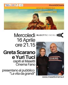 Ancora un’appuntamento da non perdere sia al Cinema Gabbiano di Senigallia sia al Masetti Cinema di Fano, dove mercoledì 16 aprile saranno ospiti in sala la regista Greta Scarano e l’attore Yuri Tuci e per presentare La vita da grandi.
