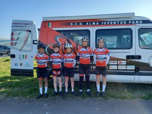 costretto ad abbandonare già al primo per un guasto al cambio. Tra i 2° Anno, che ne avevano undici da percorrere, hanno al contrario rotto presto gli indugi quattro concorrenti riuscendo a darsi alla fuga. Riccardo Violini ha comunque gestito bene la situazione piazzandosi 22°, mentre l’altro portacolori del team fanese Pietro Staffolani ha dovuto lasciare durante il terzo passaggio. Il weekend pasquale era in realtà stato aperto dal promettente avvio di stagione dei Giovanissimi, di scena a Villa Ceccolini (PU). I più piccoli della famiglia SCD Alma Juventus Fano, seguiti dai DS Giovanni Ambrosini, Silvia Venturi e Roberto Manna, hanno difatti primeggiato sia nella classifica per numero di partecipanti per società che in quella riflesso dei risultati ottenuti individualmente dai propri atleti. Nello specifico: fra i G1 3° il debuttante Francesco Baldarelli; fra i G2 9° Federico Lepretti e 10° Emanuele Gentile; fra i G3 2° Federico Guarini, 4° Stefano Mazzarella e 6° Diego Roscini; fra i G4, dove Nicholas Vegliò è caduto senza conseguenze, successo netto per Ginevra Agostini, unica donna alla partenza, e 5° posto per Mattia Cassiani; fra i G5 vittoria in volata per Filippo Marraffa; fra i G6 2° Tommaso Dominici, 3° Marco Ringhini e 6° Davide Leonardi.