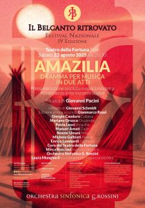 Sabato 23 agosto 2025 il Festival si sposta nel meraviglioso Teatro della Fortuna di Fano, dove alle 20.30 tornerà sulle scene, in prima esecuzione assoluta in epoca contemporanea, Amazilia, il melodramma di genere serio di Giovanni Pacini, con libretto di Giovanni Schmidt (che collaborò con Rossini, Mercadante, Donizetti, Spontini). Nel 2025 l’opera viene ripresa dal Festival grazie all’edizione critica di Gianmarco Rossi, che presenterà il suo lavoro di ricerca e la nuova edizione dell’opera lo stesso giorno in una conferenza nel foyer del teatro fanese alle ore 18.30 (a seguire, un brindisi prima della recita delle ore 20.30).