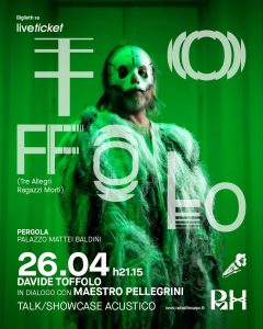 Mattei Baldini a Pergola, prevede sabato 26 aprile alle 21.15, il concerto del frontman dei Tre Allegri Ragazzi Morti, Davide Toffolo, con la formula ormai consolidata di “musica e parole”, guidata dall’amico e musicista Francesco “maestro” Pellegrini. A questo format nato proprio dalle sue presentazioni/interviste con gli artisti ospitati a Rebel House, ha dato un nome “In diretta”, cominciandolo a proporre anche altrove.