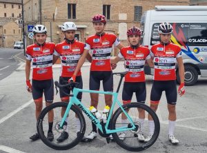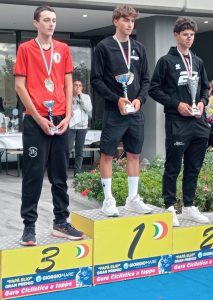 Il terzo posto di Kevin Piccioli alla cronometro individuale di sabato ad Urbisaglia (MC) ha nobilitato lo scorso fine settimana della SCD Alma Juventus Fano, la cui stagione sportiva sta volgendo al termine con segnali incoraggianti per il futuro. Piccioli, della formazione Allievi dei DS Gabriele Gorini e Filippo Beltrami, è salito sul terzo gradino del podio della Papà Elio GP Giorgio Mare con un gap di poco più di 15 secondi dal vincitore Filippo Cingolani del Team Cingolani ed a meno di 5 dal secondo classificato Stefano Maria Alessiani della Petrucci Zero24 Cycling. Davvero un bel risultato per il classe 2010 arancio-aragosta, così come è degna di nota la nona posizione ottenuta dal compagno di squadra Youssef Dahani. Un po’ più attardati gli altri portacolori fanesi, con Pietro Brancati tredicesimo, Massimo Ranieri diciannovesimo e Luca Conti ventunesimo. Gli Allievi della SCD Alma Juventus Fano hanno poi corso il giorno seguente la classica Sarnano-Recanati, gara in linea con un finale di due giri da 7 chilometri ciascuno culminanti con la salita che portava al traguardo situato proprio al centro della città natale di Giacomo Leopardi. Previsti