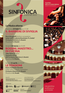 Tre gli appuntamenti: “Si comincia il 23 febbraio con Gioachino Rossini e Il barbiere di Siviglia: andrà in scena una delle opere più celebri e amate del compositore pesarese, che sarà proposta in una versione smart coinvolgente e affascinante. L’adattamento, la direzione e la conduzione dello spettacolo saranno del Maestro Noris Borgogelli. Sarà un terzetto di grande prestigio a formare il cast canoro: Manuel Amati, Il Conte d’Almaviva Marta Pluda, Rosina e Matteo Mancini, Figaro. La parte strumentale sarà affidata ad una formazione cameristica dell’OSR. Si proseguirà il 14 marzo con Rossini, maestro… di cucina: un viaggio musicale e gastronomico attraverso le curiosità legate alla passione per la cucina che Rossini nutriva, ispirando un programma che mescola musica e aneddoti divertenti. Gli interpreti saranno le prime parti dei fiati dell’OSR e l’attore Jader Baiocchi. Terzo e ultimo appuntamento, l’11 aprile, dedicato ad Antonio Vivaldi. Del prete rosso, saranno proposte Le Quattro Stagioni: uno dei capolavori più iconici della musica barocca, che darà vita a un’esperienza coinvolgente e vibrante per il pubblico. Ancora una volta la recitazione, quella dei sonetti che accompagnano ogni concerto, sarà il tappeto poetico su cui si svilupperà la musica a programma tra le più importanti della storia della musica. Henry Domenico Durante, sarà il violino solista e maestro concertatore che condurrà la sezione d’archi dell’OSR”.