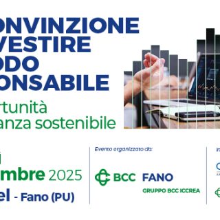 Giovedì 20 novembre il convegno “La convinzione di investire in modo responsabile – Le opportunità della finanza sostenibile”, per coniugare rendimento, etica e sviluppo del territorio Investire in modo consapevole, sostenibile e...