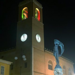 Un dono alla città di Enrico Terminesi. Il sindaco: “Anche a distanza restiamo tutti uniti. La comunità fanese è forte e ce la farà” Il campanile del Teatro della Fortuna e il Bastione Sangallo...