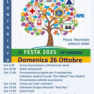 Si è svolta domenica 26 ottobre la diciannovesima edizione di “Volontariato in Festa”, la festa dedicata a tutti coloro che con le loro azioni positive contribuiscono al miglioramento del nostro territorio e sono...