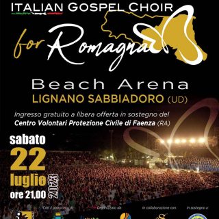 Il coro Gospel nazionale live sabato 22 luglio, alla Beach Arena di Lignano Sabbiadoro (UD), in aiuto della Protezione Civile di Faenza (RA) Dopo la recente e fortunata partecipazione televisiva su Canale 5,...
