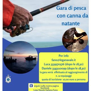Domenica 20 luglio 2025 dalle ore 6:00 alle ore 11:00 la Lega Navale di Italiana Sezione di Fano organizza la GARA DI PESCA CON CANNA DA NATANTE. La quota di partecipazione è di...