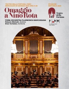 Per questo Omaggio a Nino Rota, l’Orchestra Filarmonica Marchigiana viene diretta da Roberto Molinelli, musicista versatile ed eclettico, unanimemente apprezzato, da oltre 20 anni, in campo nazionale ed internazionale, per la sua capacità di creare, comporre e realizzare progetti di ogni genere musicale, dal classico, al jazz, al pop, al rock cercando di costruire un dialogo tra generi e stili diversi. A lui la FORM ha commissionato un’opera per trombone e orchestra che pertanto sarà eseguita in questa occasione per la prima volta in assoluto, da Enzo Turriziani, trombone solista dei Wiener Philharmoniker, una delle più importanti e conosciute orchestre al mondo.