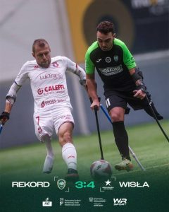 Un trascinante Lorenzo “Lollo” Marcantognini non è bastato per consentire al suo Rekord Kuloodporni Bielsko-Biała di spezzare l’egemonia del Wisła Cracovia, incontrastato dominatore da qualche anno a questa parte nelle competizioni polacche di calcio amputati e vincitore dell’edizione 2024 della Champions League. Il ventitreenne fanese, grande protagonista dei trionfi in patria dei campioni d’Italia in carica dello Sporting Amp Footbal Club Fano di “Paio” Palazzi e pilastro della nazionale azzurra, ha realizzato una doppietta (con un gol di rapina sottomisura ed un altro con un pregevole pallonetto a scavalcare il portiere in uscita) nella combattutissima finale della Coppa di Polonia persa 4-3. Nella Final Seven disputata nell’impianto al coperto di Świlcza, nella regione di Podkarpacie, a circa 340 chilometri a sud dalla capitale, “Lollo” aveva anche aperto le marcature nel roboante 10-0 rifilato ai quarti al malcapitato Zawisza Bydgoszcz e nel successivo 2-0 inflitto in semifinale al Legia Varsavia. Marcantognini è atteso di nuovo in Polonia per il debutto nel campionato 2026, che prenderà il via con la tappa di Varsavia. Ovviamente ancora con indosso i colori del Rekord Kuloodporni Bielsko-Biała, coi quali ha collezionato sinora due secondi ed un terzo posto.